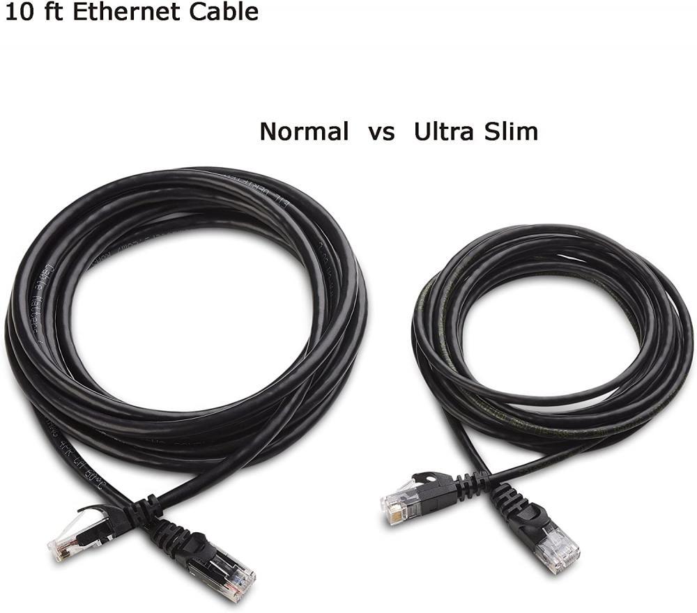 スナッグレス Cat6 ウルトラシン イーサネットケーブル (黒)は、標準的な Cat6 イーサネットケーブルよりもはるかに薄く、軽量です。