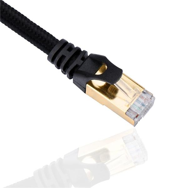 編組Cat7コンピューターネットワークLAN パッチケーブル 各ペアにはシールド層があり、4対のワイヤを一緒にすると共通のシールド層があります。ナイロン編組とPVCジャケットにより、 CAT7イーサネットケーブル の直径が大きくなります。追加のナイロン編組層は、多ストランドの高強度コットンメッシュで包まれており、より強力で耐ひずみ性があります。4つのシールドで構成されています ツイストペア各RJ45コネクタに金メッキされたコンタクトピンを備えた銅線(STP)。これにより、クロストーク、ノイズ、干渉に対する優れた耐性が得られます。