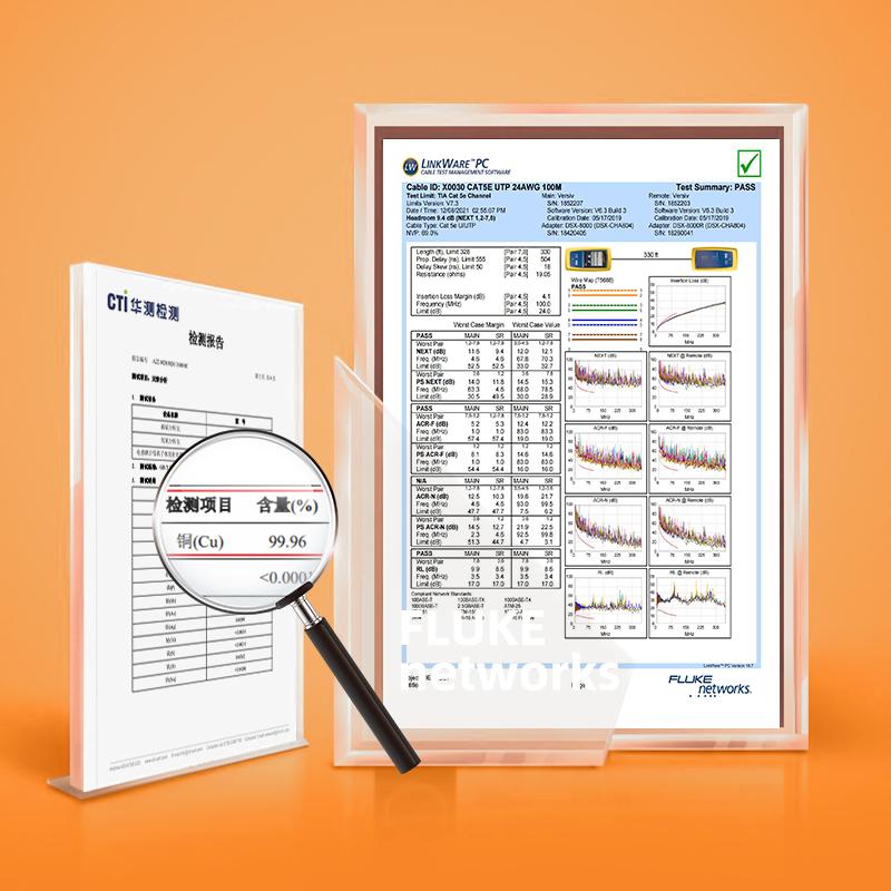 Rigorous Fluke testing ensures network cables’ superior quality and reliability.
