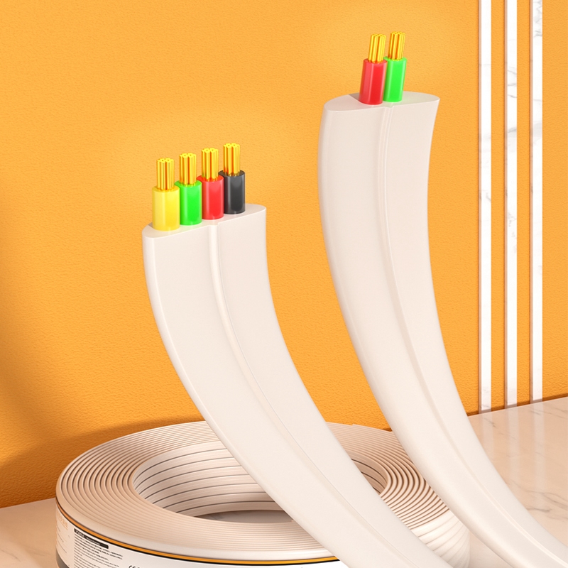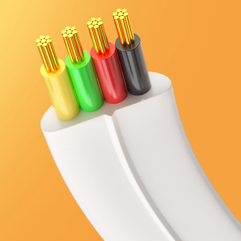 The 4-Core Flat Telephone Cable of BRUNSMEN, designed for office and home use. It features a flat profile that allows for easy installation in tight spaces, such as within walls or ceilings.