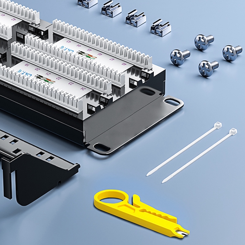 - Easy Installation and Maintenance: The 48-port patch panel is designed for hassle-free installation. It typically features a standard 19-inch rack-mountable design, allowing for easy integration into server racks or network cabinets. The cable termination process is straightforward, with clear markings and color-coded guides to assist in proper cable connection. Maintenance is also simplified, as individual ports are easily accessible for testing and troubleshooting.