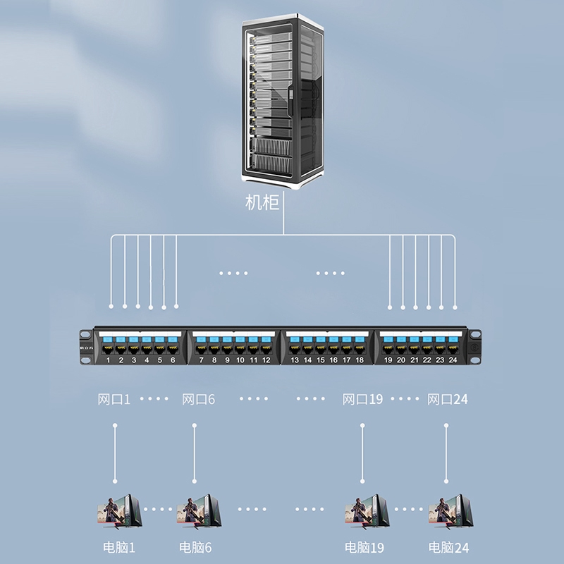 - Office Buildings: In office environments, the patch panel is used to connect computers, printers, IP phones, and other network-enabled devices to the local area network (LAN). It allows for easy expansion and reconfiguration of the network as the needs of the office change, and helps to keep the network organized and reliable.