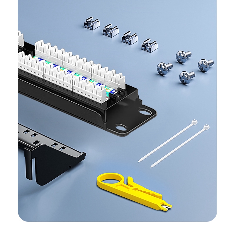 - Easy Installation and Maintenance: The patch panel is designed for easy installation. It usually features a standard 19-inch rack-mountable design, allowing it to be easily installed in a server rack or network cabinet. The cable termination process is straightforward, with clear markings and color-coded guides to assist in proper cable connection. Additionally, it facilitates easy maintenance and troubleshooting, as individual ports can be easily accessed and tested.