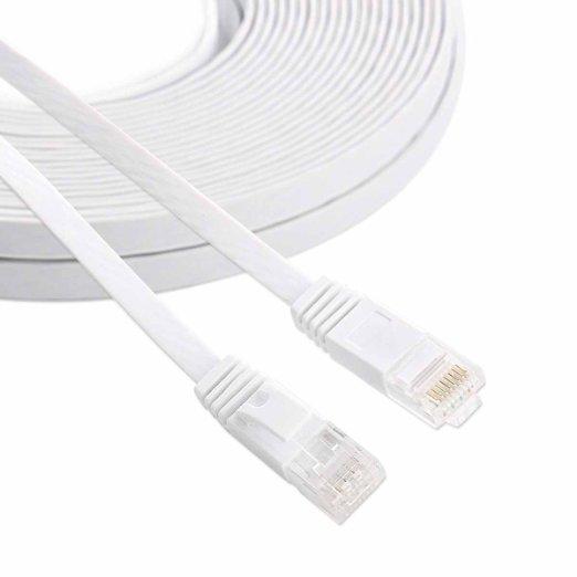 CAT6 Ethernet Cable 100ft Flat White With Cable Clips, no need to buy clips elsewhere. The unique CAT6 Flat Ethernet Cable is designed with a flat shape which could allows for a cleaner and safer installation. Flat Cat6 Ethernet Cable improve the look of your home or office. Flat Cat6 Patch Cable are super flexible and can be run under the carpet or bent through corners or into destk. This Cat 6 Ethernet Cable provides performance of up to 250Mhz and also suitabot for 10Base-t, 100BAST-TX, 1000BASE-T.