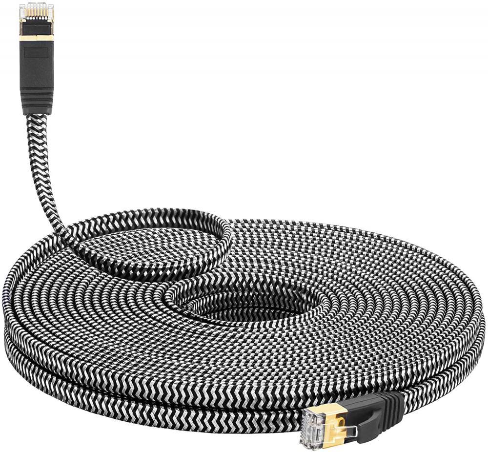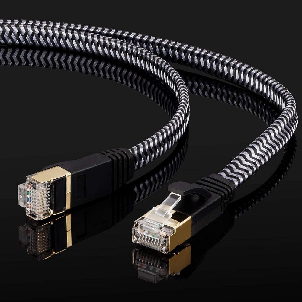 Nylon Braided Network Cable Cat7 Ethernet Cable could be compatible with Cat5E Patch Cable and Cat6 Patch Cable and cat6A Ethernet cables. Cat7 cables are made of 4 shielded Twisted Pair of copper wires with two RJ45 connectors on each end with better quality in twisting of the wires high quality shielded RJ45 connectors-50 micron Gold Plated contact pins in each shielded. The unique Flat Cable shape allows for a cleaner and safer installation. You can easily and seamlessly make the cable run along walls, follow edges&corners or even make it completely invisible by sliding it under a carpet.
