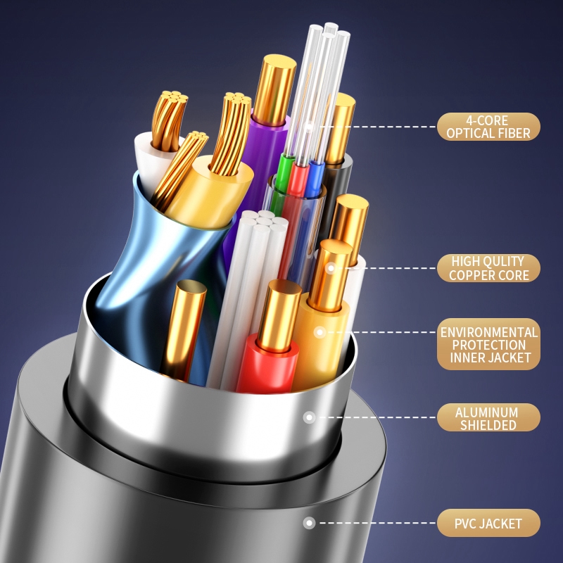 - Immune to Electromagnetic Interference: Since fiber optic cables use light signals for transmission instead of electrical signals, they are completely immune to electromagnetic interference (EMI) and radio frequency interference (RFI). This means that in environments with high levels of electromagnetic activity, such as near power lines or electronic equipment, the signal quality remains unaffected, guaranteeing a stable and consistent audio-visual output.