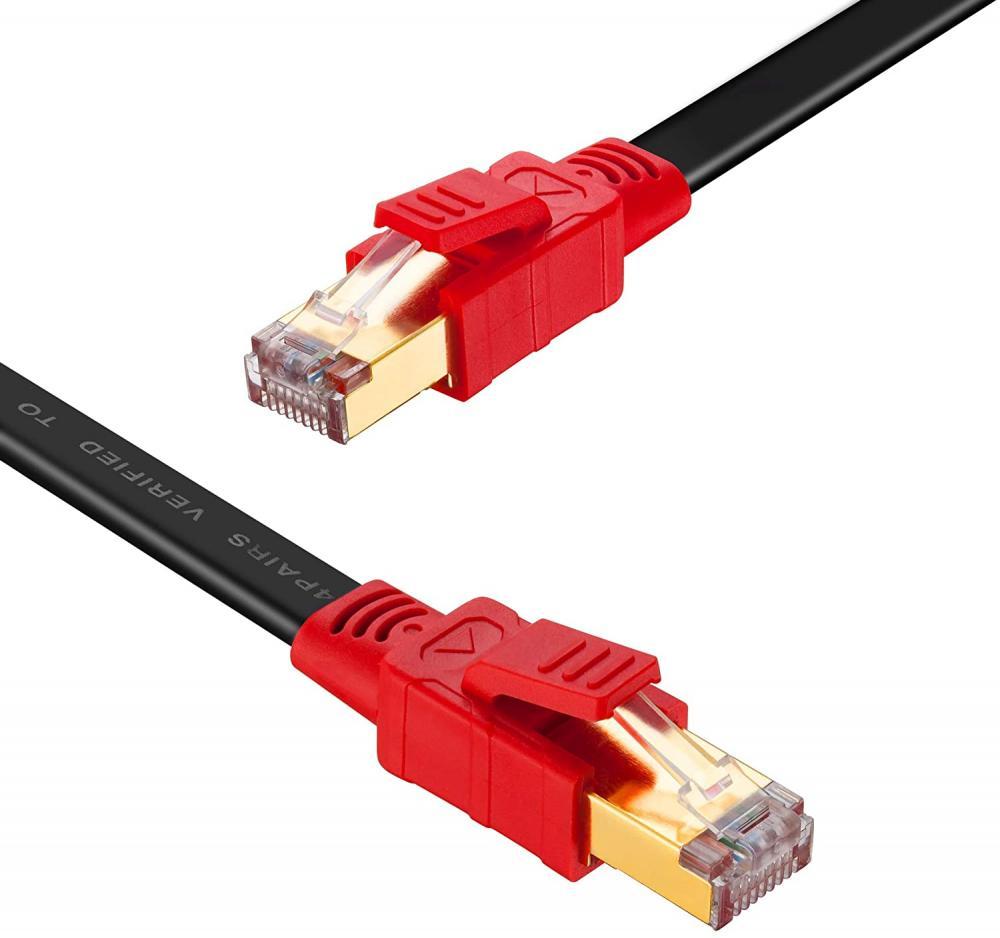Cat 8 Cable Unique Flat Design For Easier Installation. Flat Cat8 Cable different from the round rigid and bulky Ethernet Cable, CAT8 Flat Ethernet Cable is flexible that can be wired up along your house or office. You can route the cables along the edges or corners of the wall easily and seamlessly, or even put them under the carpet as invisible. No worry that your Network Cable is messing or taking too much place. Besides,The black color is resistant to dirt,ideal for outdoor or indoor. And CAT8 Flat Internet Network Lan Cable is up to 40Gbps 2000MHz SFTP Network Patch Cord .